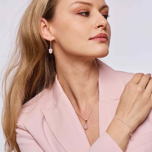 Rose quartz and pearl tulip earrings