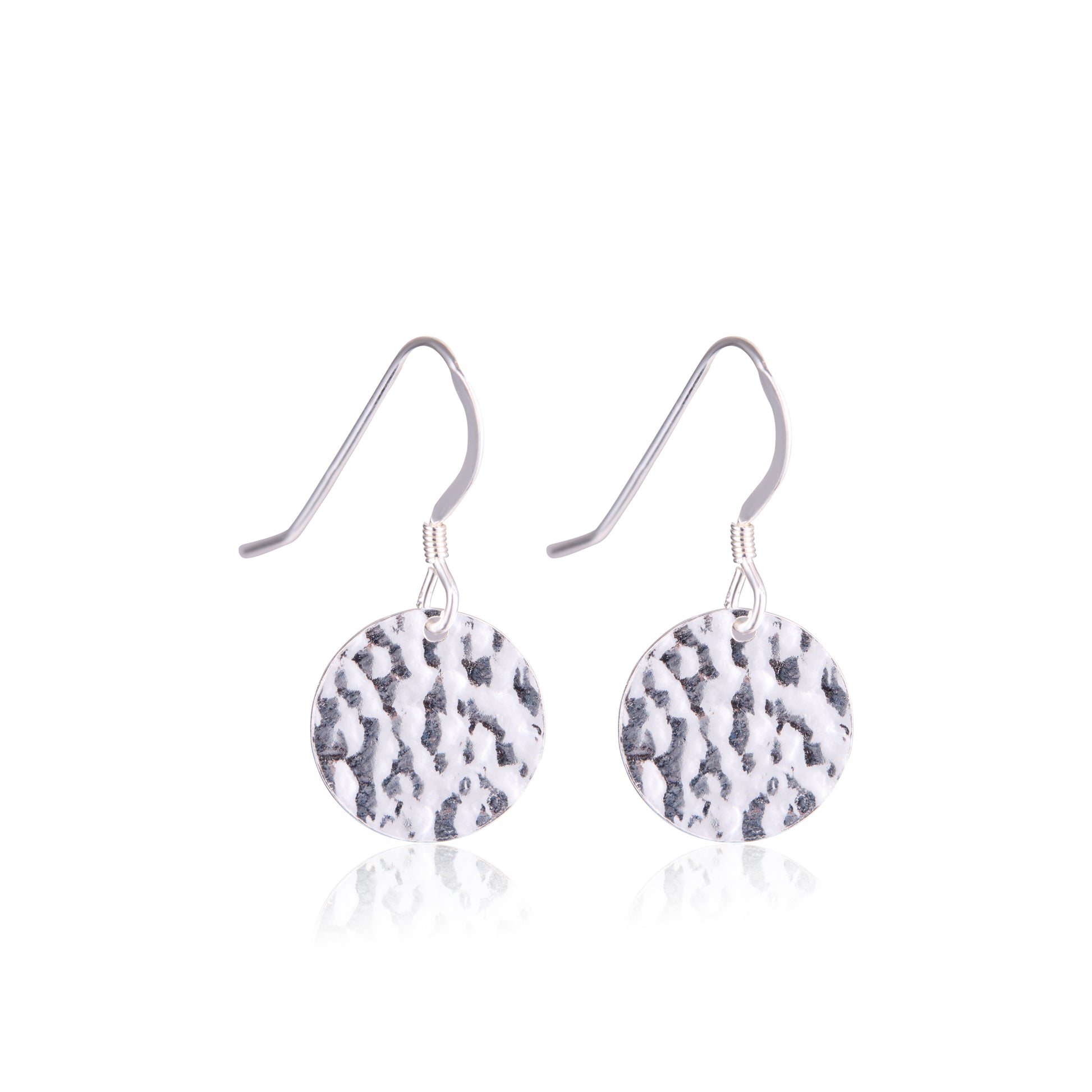 Elegant in their simplicity, our Luna Hammered Disc Earrings bring timeless texture to your everyday style. Handcrafted in sterling silver, each lightweight disc features a unique hammered finish that catches the light with every movement—subtle shimmer with effortless charm.
