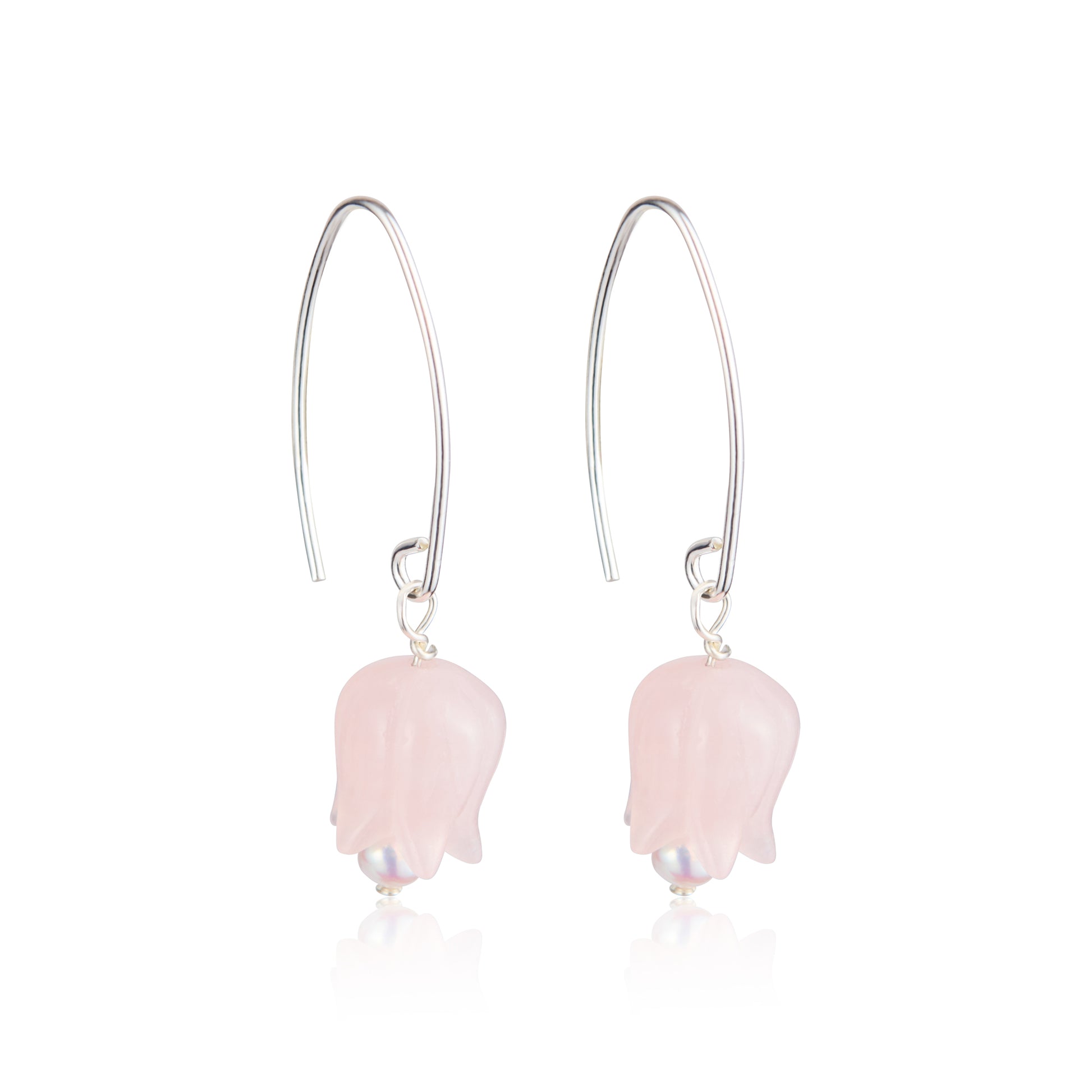 Upgrade your earring collection with our elegant rose quartz and pearl tulip earrings. The subtle combination of rose quartz and pearl beads create a delicate and feminine look, perfect for any occasion. Guaranteed to add a touch of sophistication to your outfit.